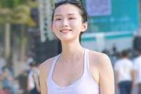 显身材不浮夸,白背心配蓝瑜伽裤,不同身材都能穿得好看