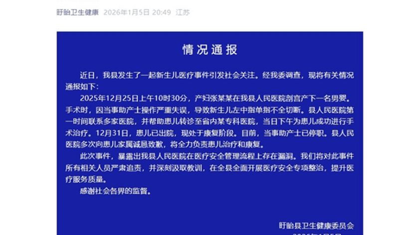 搜狐医药 | 网友曝光“新生儿剪脐带时被剪断手指”,当地卫健委发布通报